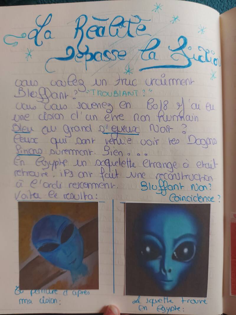 A gauche mon dessin d'après ma vision 2018